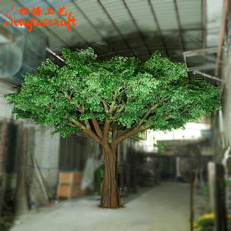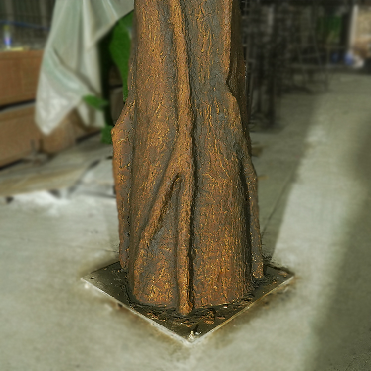 大型仿真樹榕樹樹形奇特,壽命長,根系發(fā)達(dá),被人們稱為“獨木成林”的風(fēng)景樹和風(fēng)水樹。仿真榕樹的古典與現(xiàn)代酒店的豪華氣氛相映襯,自然景觀與現(xiàn)代酒店的完美融合,體現(xiàn)了酒店的獨特風(fēng)格。由于高仿真擬態(tài)效果可以讓仿真榕樹達(dá)到以假亂真的境界,在景觀裝飾中,可以打破建筑物的呆板、僵硬,使其趨于自然,讓人有曲徑通幽之感,是比較適合以自然生態(tài)為主的園林景觀裝飾。