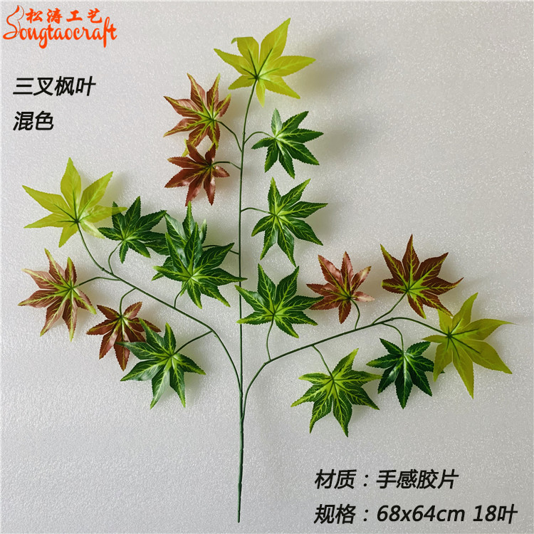 仿真楓樹葉包裝規(guī)格:120x98x70cm/300打,手感仿真楓樹葉顏色可選:紅色楓樹葉,混色綠紅黃色楓葉,紅黃色楓葉。如下為紅楓葉單支效果: